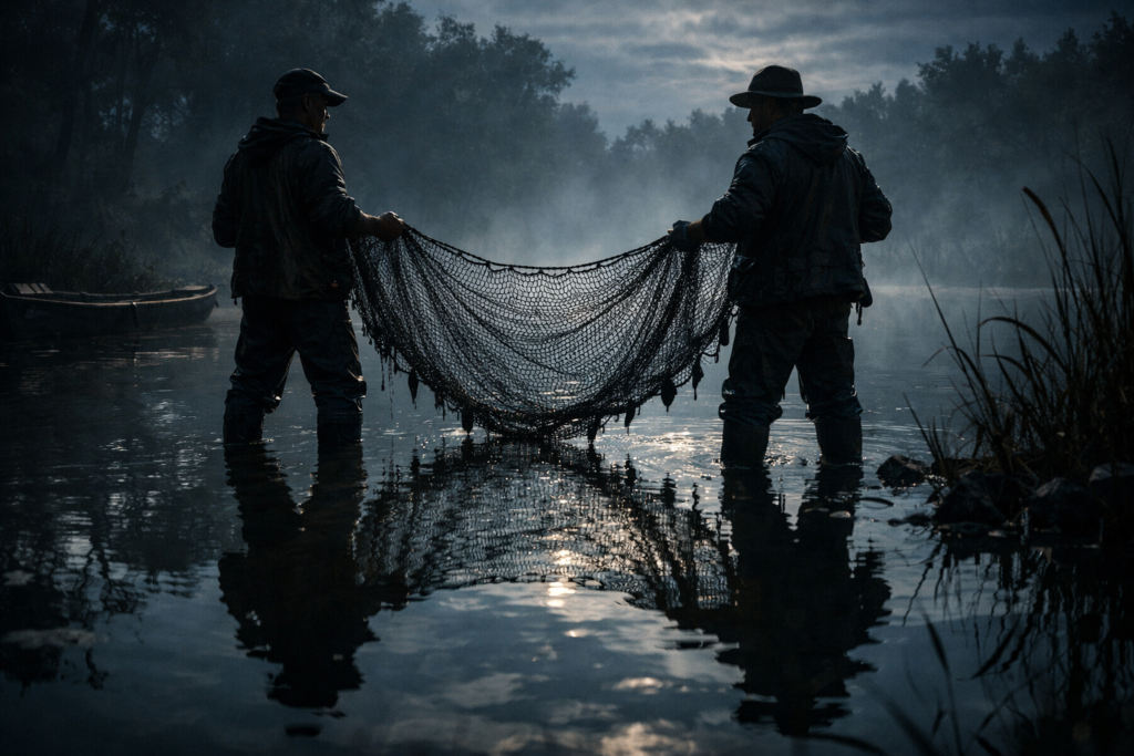 अगले दिन मछुआरे आए और जाल डाल दिया।