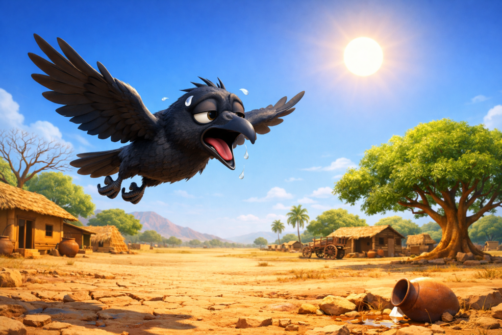 एक समय की बात है, एक कौआ 🐦 बहुत प्यासा था।