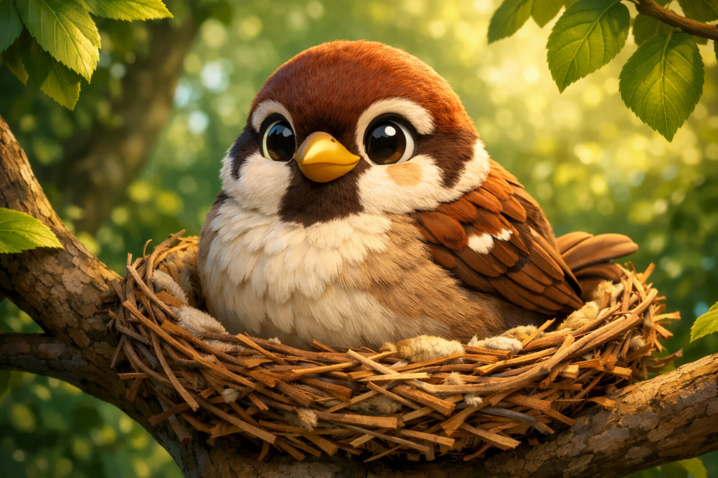 एक जंगल में एक छोटी गौरैया 🐦 रहती थी।