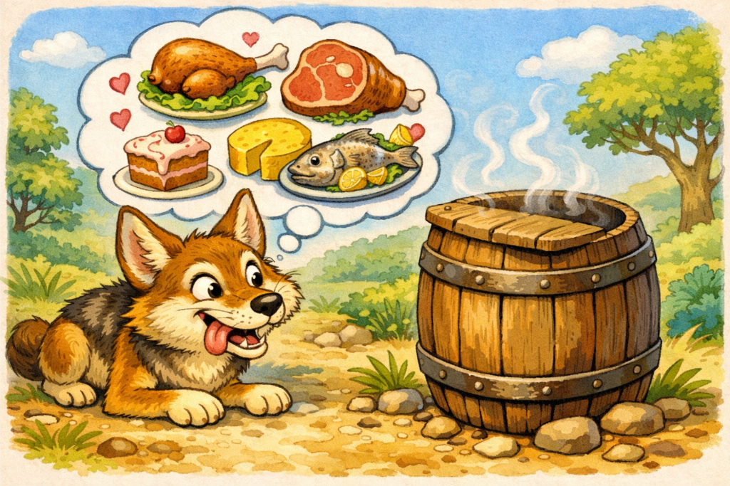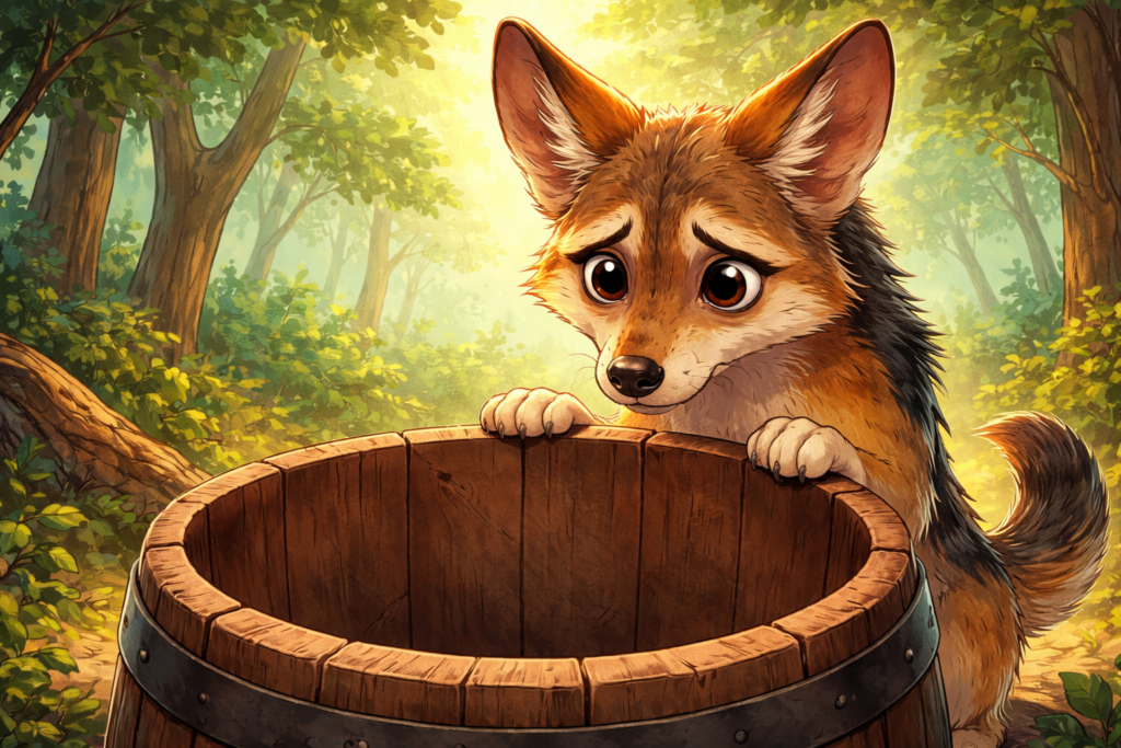 बहुत समय पहले एक घने जंगल में एक गीदड़ रहता था। वह बहुत भूखा और थोड़ा लालची भी था।