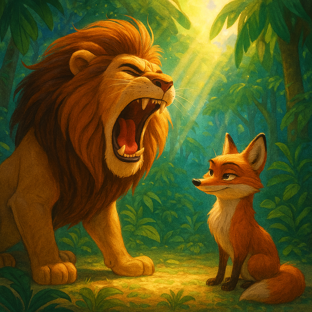 एक दिन शेर शिकार की तलाश में जंगल में घूम रहा था। अचानक उसकी मुलाकात एक छोटी लेकिन बहुत चालाक लोमड़ी से हो गई।